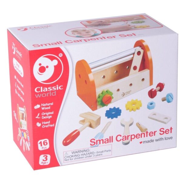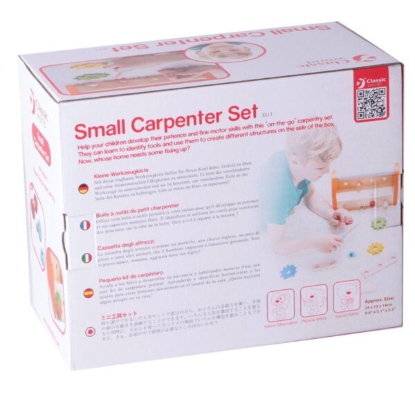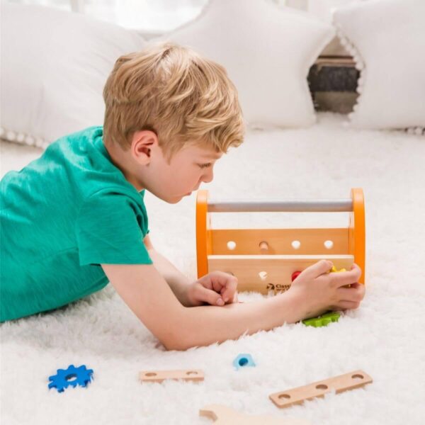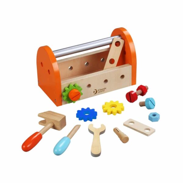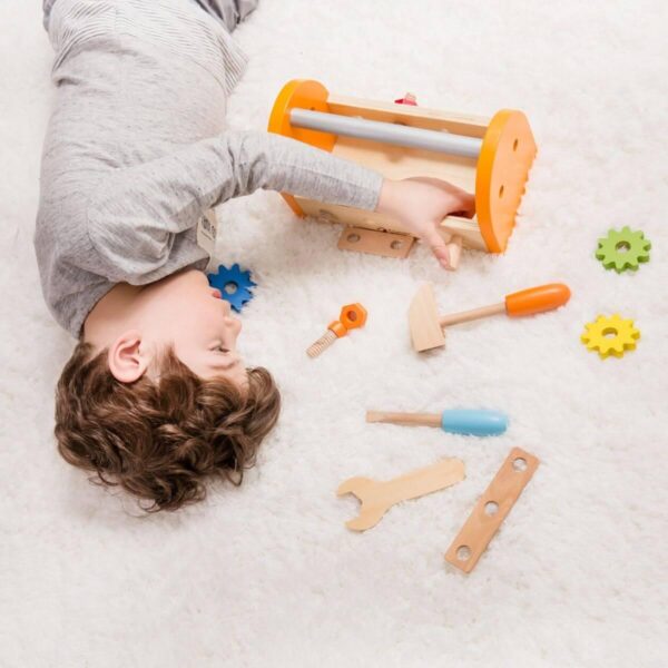 Esta caja de herramientas pequeña, ayuda a tu peque a desarrollar la concentración y las habilidades motoras finas con este juego para llevar. Tu hij@ aprenderá a identificar herramientas y cómo usarlas, crear estructuras separadas o unir piezas al costado de la caja de herramientas.